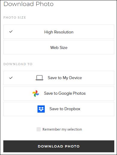 Click the DOWNLOAD PHOTO button. A box will appear at the top right of your screen allowing you to save the picture to your computer or phone and rename the photo.