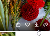 Hover your mouse over a picture and a menu will appear at the bottom right of the picture. Or click on the picture to expand it to full screen and a menu will appear at the top right of the screen. Click on the download arrow to download the picture to you phone or PC.